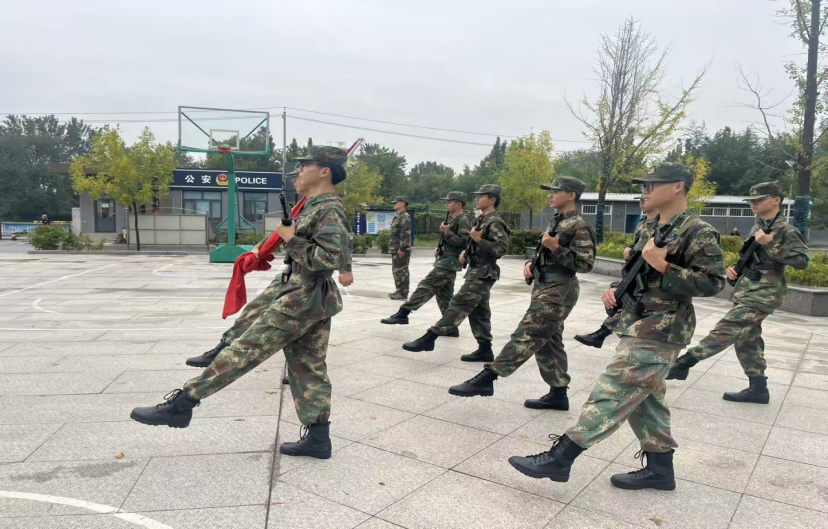 随着激昂的出旗号令响起,国旗护卫队英姿飒爽,迈着坚定而整齐的步伐走向升旗台。