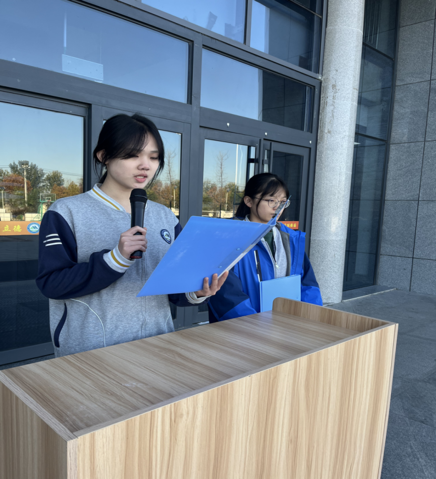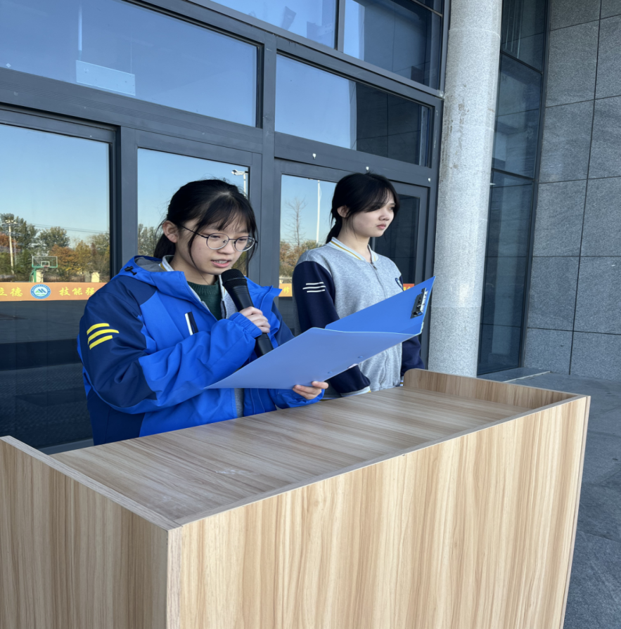 今天的升国旗仪式由我校2024级畜牧学院3班王艺菲同学主持,2024级畜牧学院3班的刁佳怡同学发表《拒绝校园欺凌,共建阳光校园》国旗下讲话。