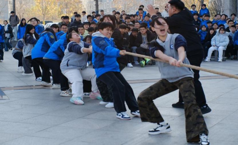 当绳子中心的标记越过终点线,赢的一方跳着抱成一团,输的一方也笑着互相鼓劲:“下次再‘战’!” 就像综合楼墙上的标语说的:“严中有爱,学中有乐”,青春的热闹与成长,本就该这样鲜活。